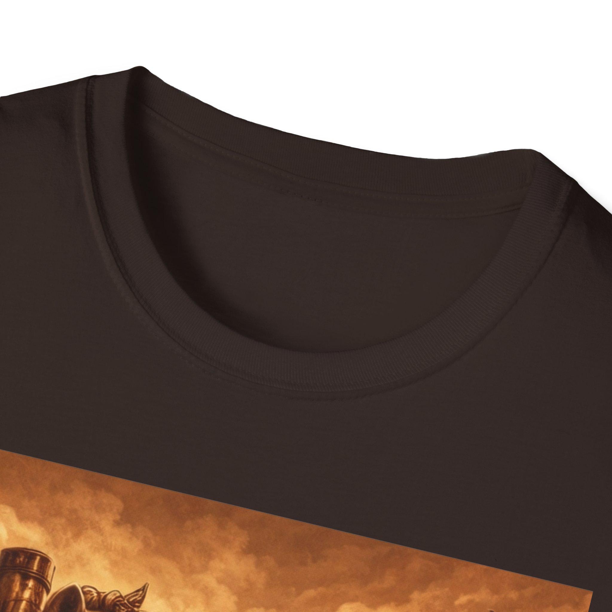 This lightweight cotton tee carries a moody, cinematic print that feels like a whispered legend — sepia-toned figures rising above a smoldering cityscape. It’s for wearers who favor subtle storytelling over loud logos: slip it on and let the art do the talking. The soft ring-spun cotton drapes comfortably through the day, while the clean crew neckline and classic fit keep the silhouette familiar and effortless. Sleeve and neck prints use high-quality DTF/DTG methods for long-lasting detail. Wear it to late-night shows, gallery walks, or when you want an outfit that holds atmosphere without trying too hard.
