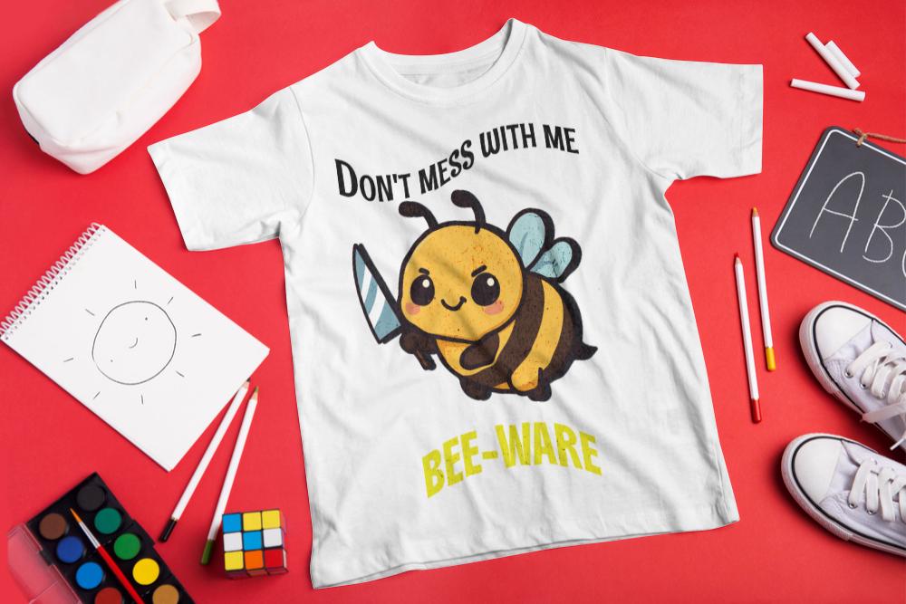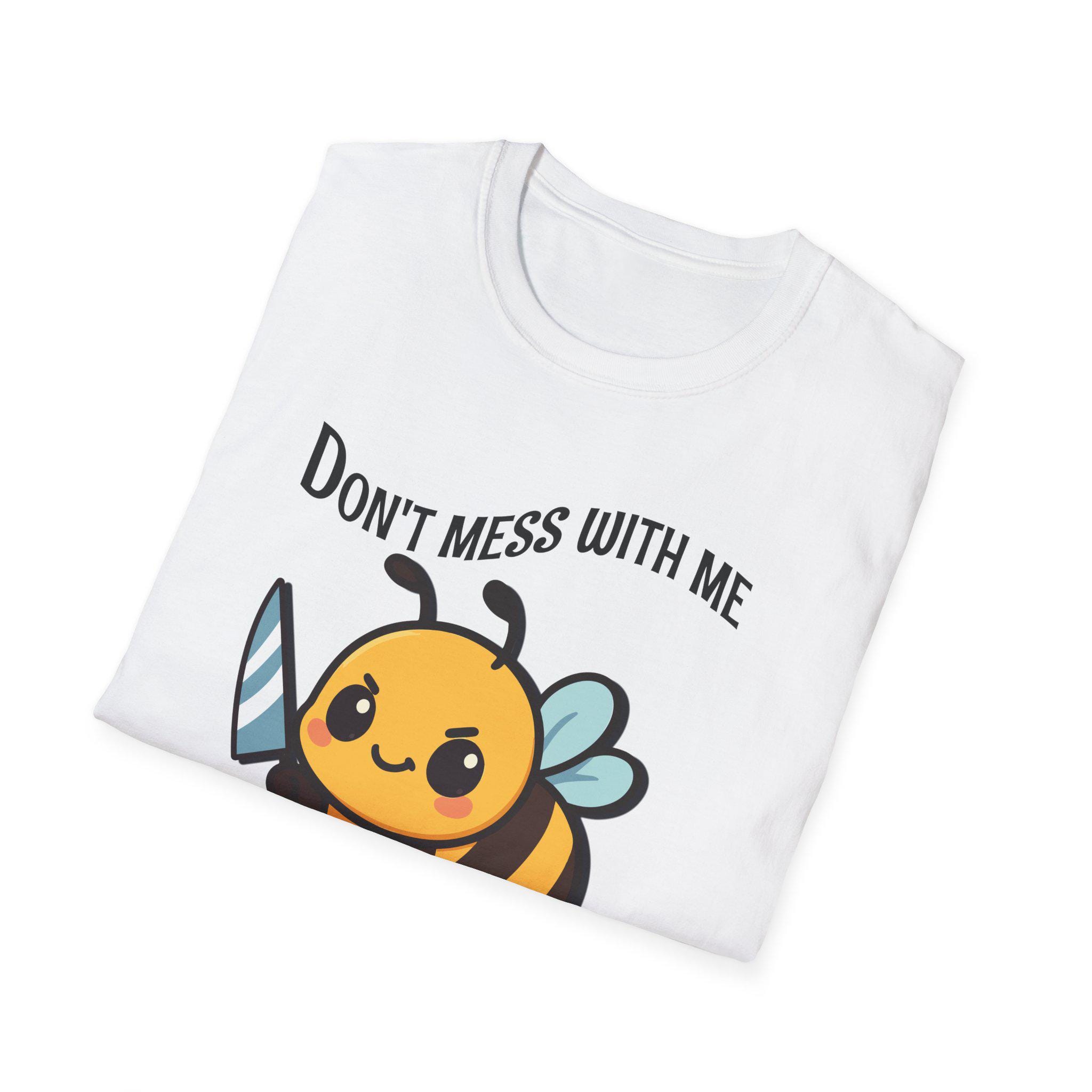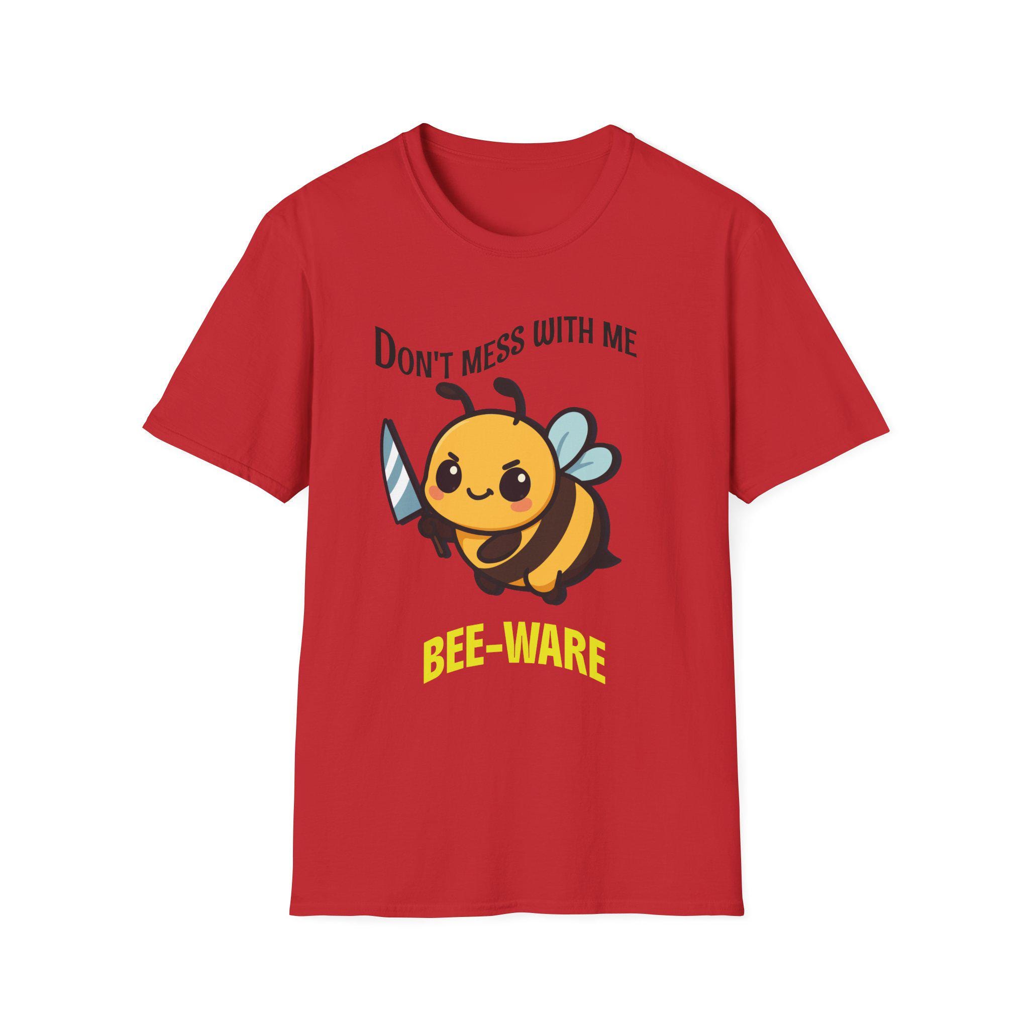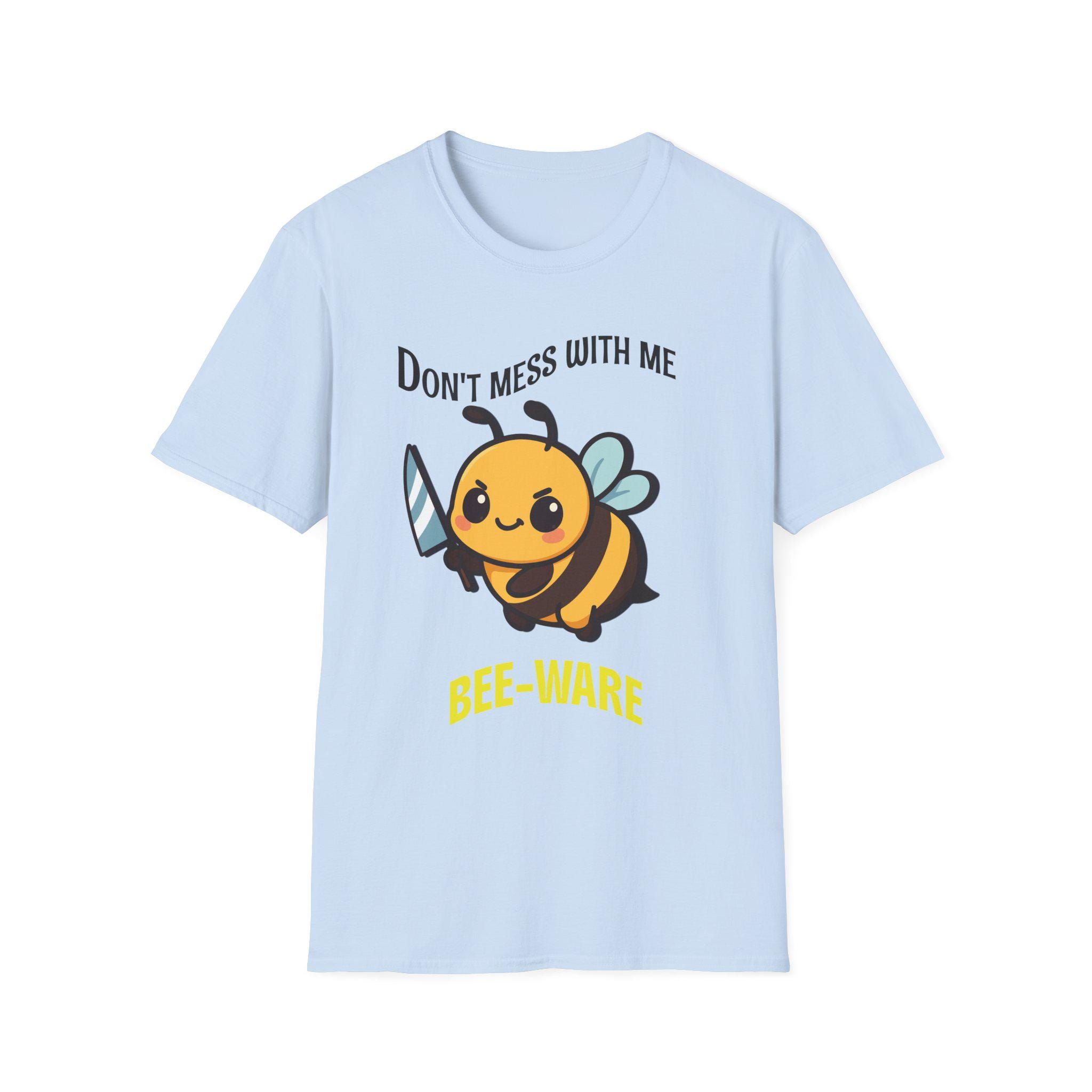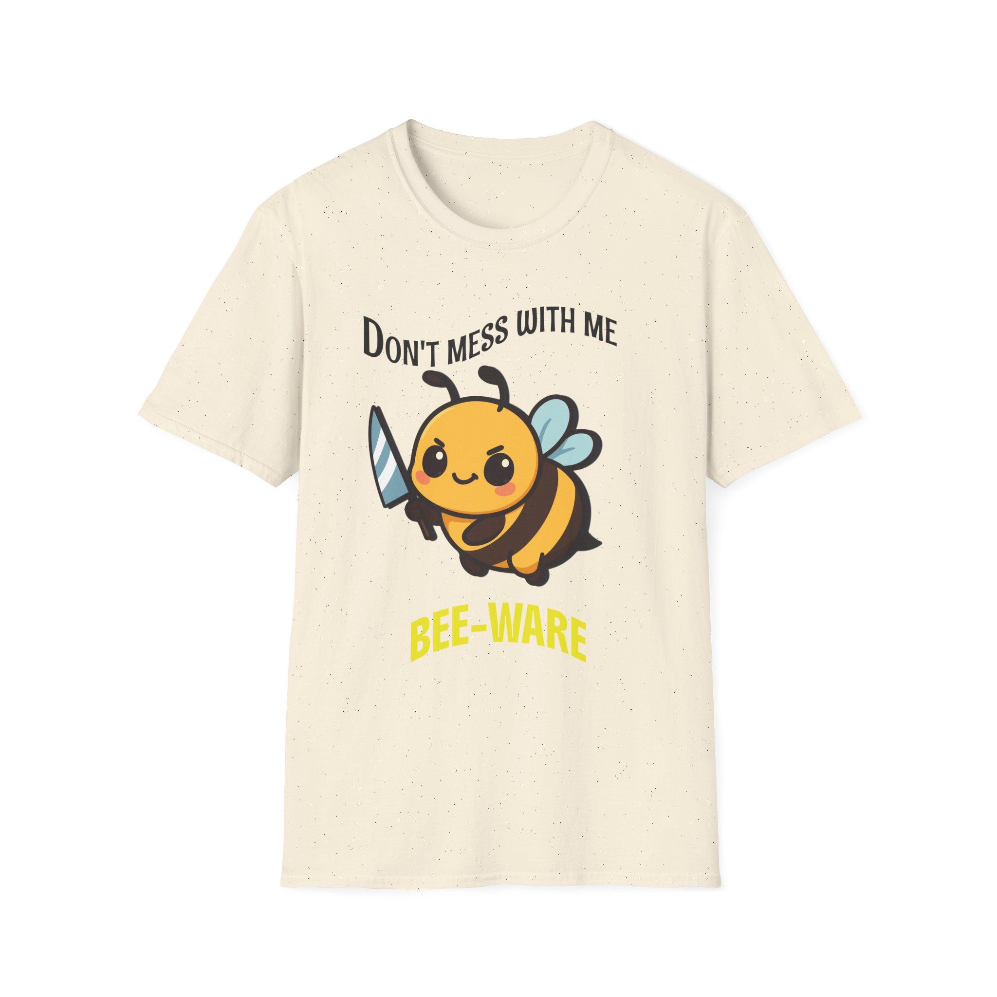 This lightweight tee carries a playful, bold energy—sweet and a little sassy. A chubby cartoon bee brandishes a tiny sword beneath the cheeky header “Don’t mess with me” and the bright “BEE-WARE” tagline. The soft, smooth ring-spun cotton feels gentle against skin while the classic crew cut keeps the look clean and wearable every day. Wear it on warm walks, at casual meetups, or around the garden to show off a fun, protective vibe with a wink. It’s a shirt that speaks to folks who like a touch of humor in their wardrobe and aren’t afraid to stand up for themselves—light, comfy, and visually upbeat for casual, everyday moments.