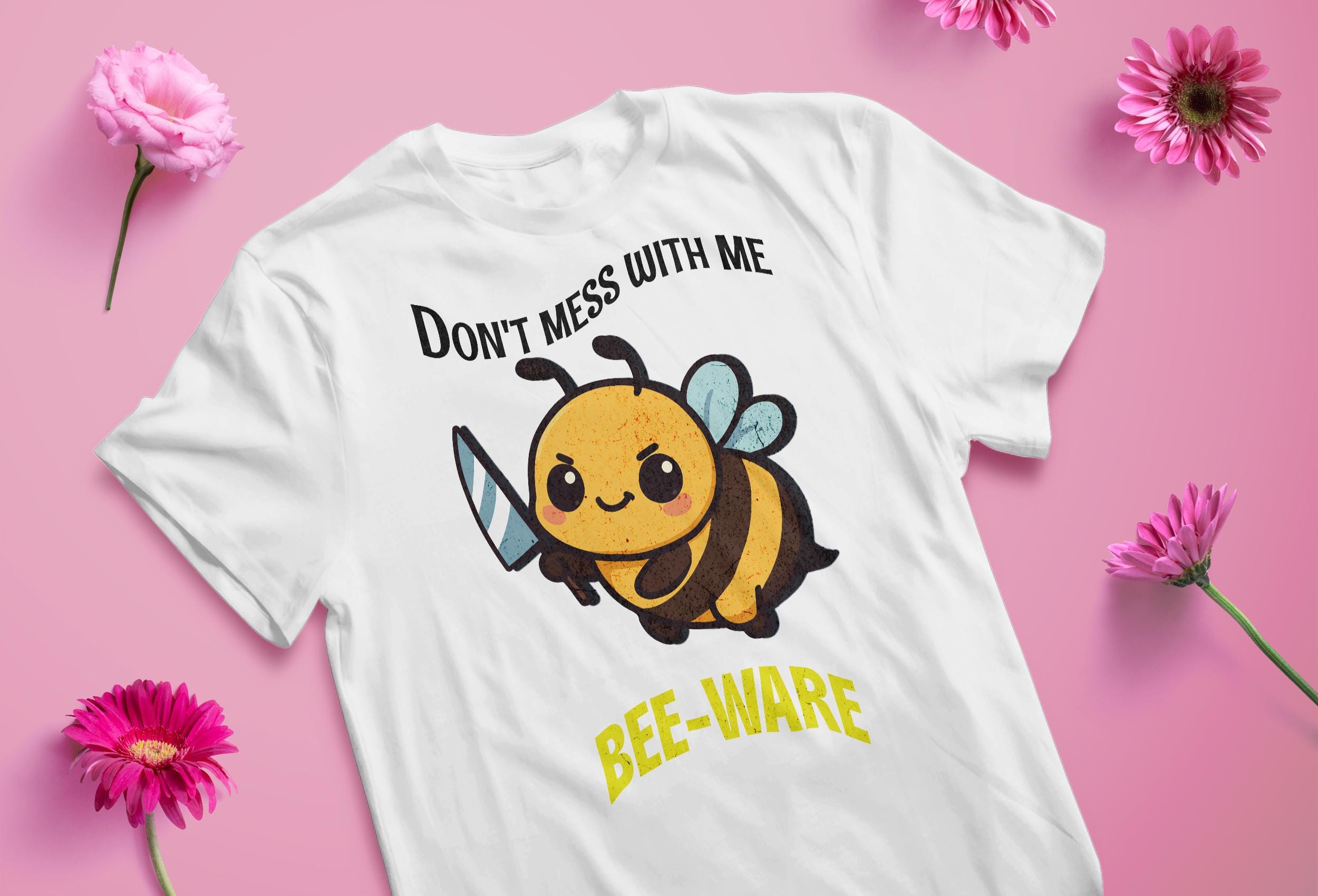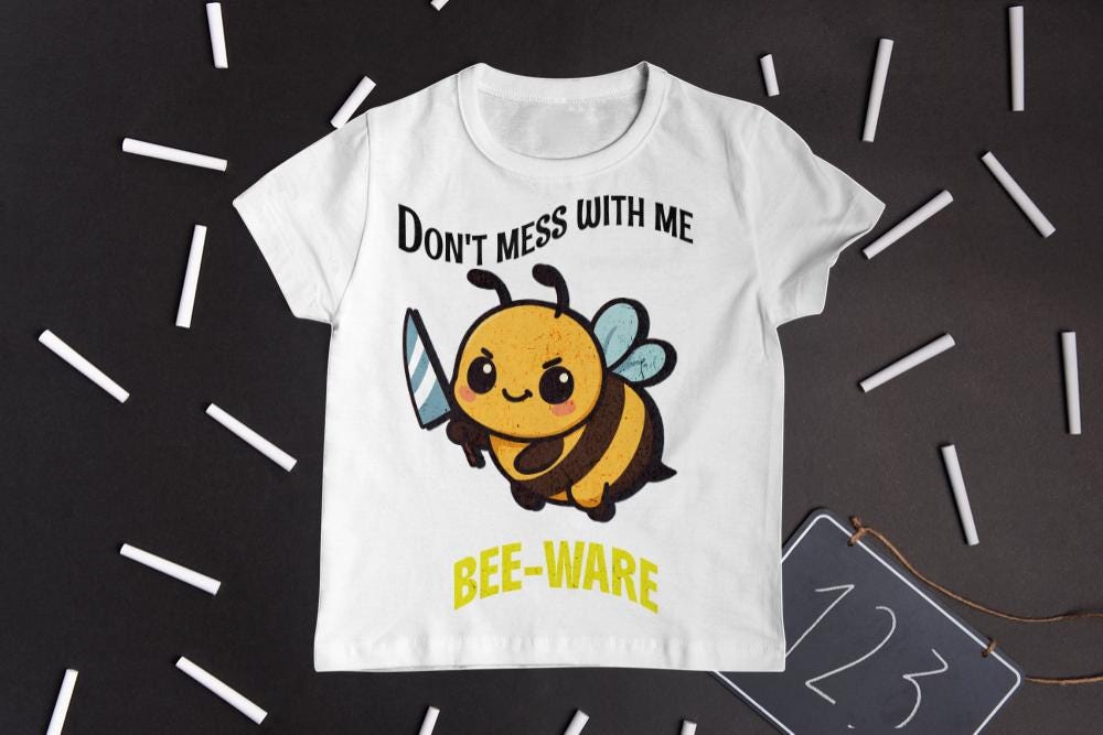 Funny Bee Gift - Bee-Ware Sarcastic Quote - Angry Bee Knife Sticker Design - Instant Download